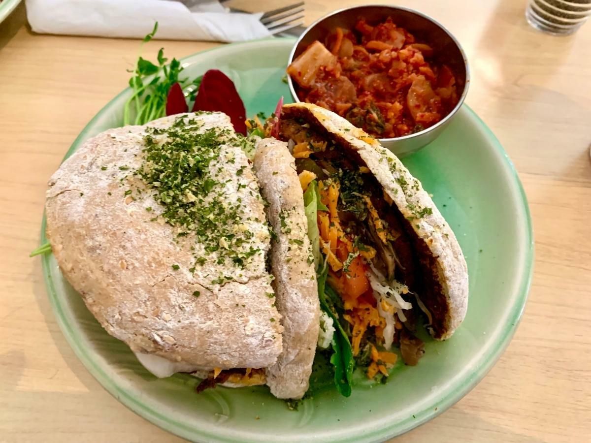 The owner has a deeply creative mind and takes her inspirations from pictures on Instagram as well as traditional recipes that she feels she can recreate without the use of meat. Take her texturely luscious and flavourful Faux Gras appetizer that was as good a veggie cracker spread as any I've had, and better than most.