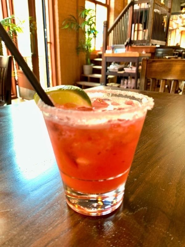 It was already more than a little spicy outside and so I treated myself to a Margarita de Barrio. This was served in a short tapered water glass and was a mix of tequila, Aperol, raspberry compote and lime. Honestly, I’ve never had such a small Margarita.
