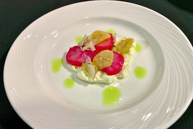 It was the first dish I’d tried and straight-away I doubted that it would have any serious contenders. It was a masterfully constructed plate of beet-cured Hokkaido scallop on a citrus grana padano foam and crisps of lemongrass plantain that landed like an umami one-two punch.