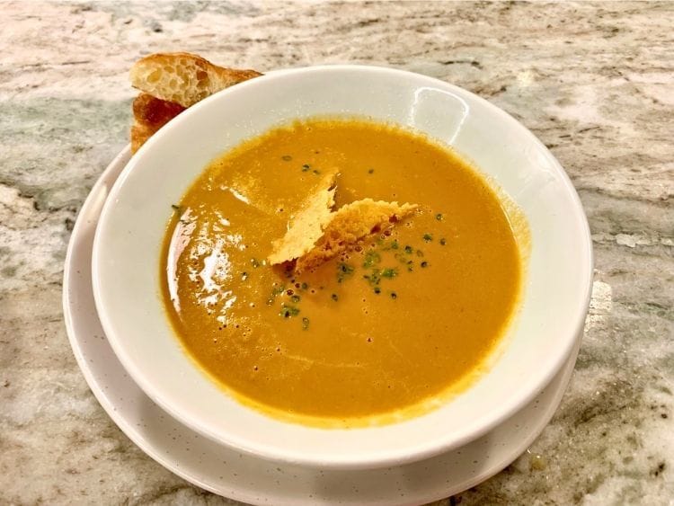 After speaking with him, I was treated to a bowl of exceptional lobster bisque, which happened to be the soup of the day. Sensuously silky, it was a symphony of flavours in such balance that not even the lobster dominated, and I was grateful. Too often this dish is characterized by excessive fishiness and here I enjoyed the harmony accented only by a hint of white wine.