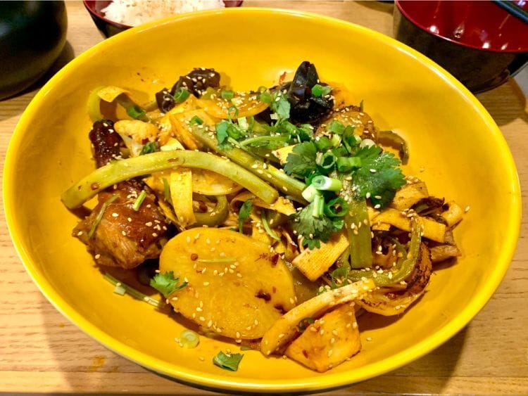 While this is a hot pot restaurant, you can order your selection of ingredients as a stir-fried version and the meat, vegetable and seafood options are plentiful.