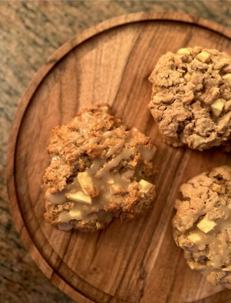 Add the dry ingredients to the wet ingredients and mix until just combined. Gently fold in the chopped apple until fully incorporated into the cookie dough.
