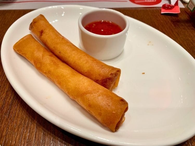 In terms of taste, the shrimp spring rolls were a step up, but with little filling and at $6 a piece, fell short of being a value proposition.